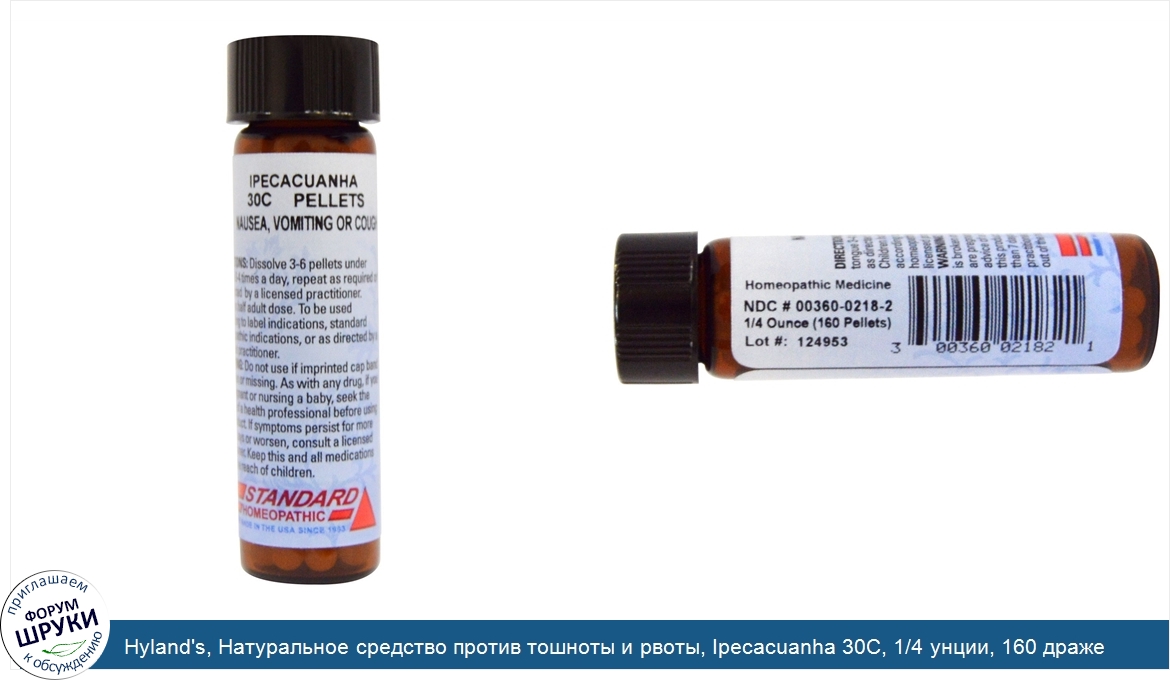 Друзья, если у вас есть отзыв/дополнение/комментарий/вопрос относительно Hyland's, Натуральное средство против тошноты и рвоты, Ipecacuanha 30C, 1/4 унции, 160 драже - напишите его ответом в эту тему (это будет полезно всему сообществу в целом и вам в отдельности).