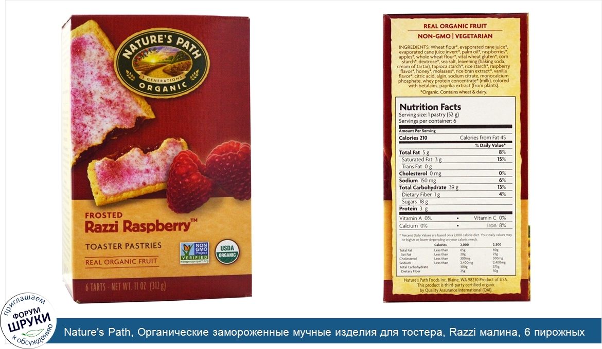 Друзья, если у вас есть отзыв/дополнение/комментарий/вопрос относительно Nature's Path, Органические замороженные мучные изделия для тостера, Razzi малина, 6 пирожных по 52 г - напишите его ответом в эту тему (это будет полезно всему сообществу в целом и вам в отдельности).