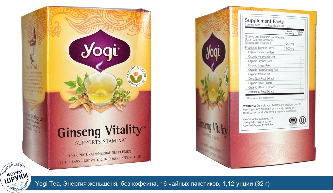 Друзья, если у вас есть отзыв/дополнение/комментарий/вопрос относительно Yogi Tea, Энергия женьшеня, без кофеина, 16 чайных пакетиков, 1,12 унции (32 г) - напишите его ответом в эту тему (это будет полезно всему сообществу в целом и вам в отдельности).
