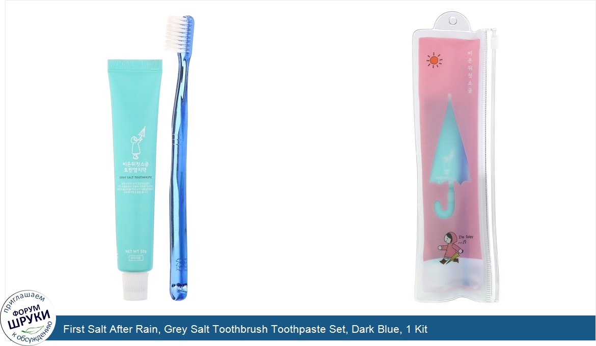 First Salt After Rain, Grey Salt Toothbrush Toothpaste Set, Dark Blue, 1 Kit