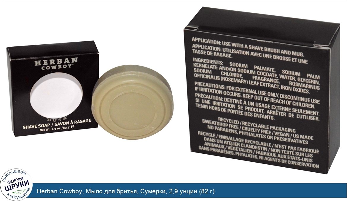 Друзья, если у вас есть отзыв/дополнение/комментарий/вопрос относительно Herban Cowboy, Мыло для бритья, Сумерки, 2,9 унции (82 г) - напишите его ответом в эту тему (это будет полезно всему сообществу в целом и вам в отдельности).