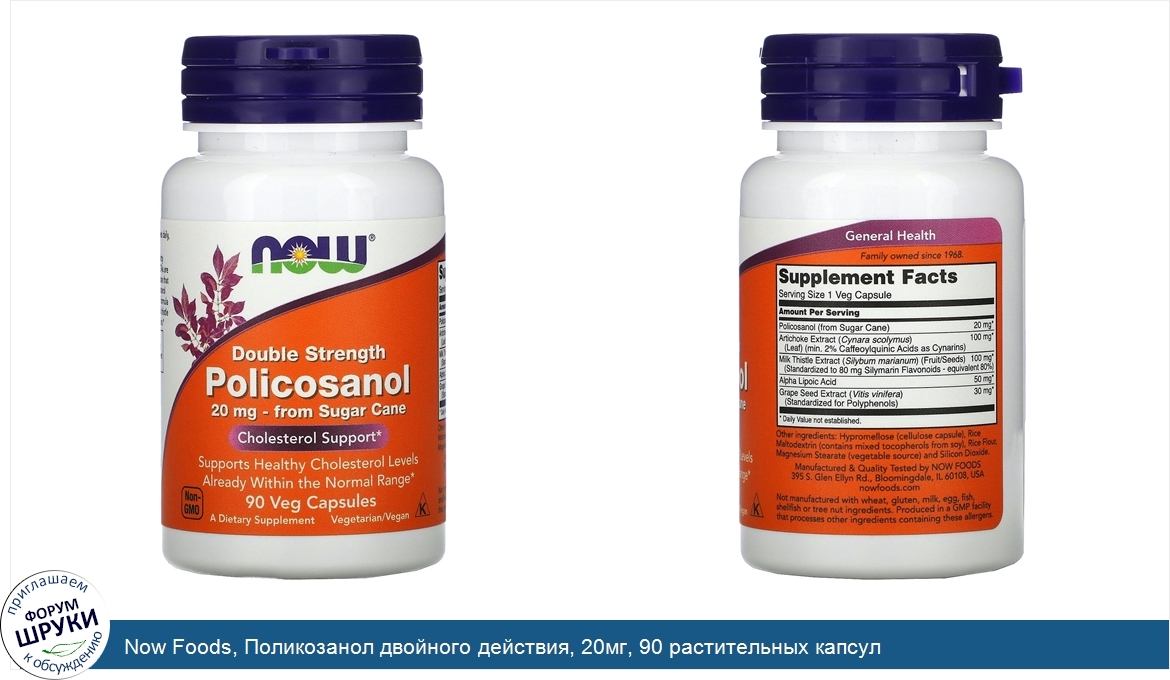 [DESCRIPT]20 mg - From Sugar Cane. Cholesterol Support. Supports Healthy Cholesterol Levels Already within The Normal Range. Non-GMO. A Dietary Supplement. Vegetarian/Vegan. Kosher. General Health. Family Owned Since 1968. GMP Quality Assured. NOW® Policosanol is a blend of long-chain fatty alcohols (LCFAs) derived from sugar cane. LCFAs are naturally occurring plant waxes. Studies indicate that these plant waxes may help to support cholesterol levels already within the normal range. This formula also includes herbs such as artichoke and milk thistle that are known to support healthy liver function. This double strength product has twice the policosanol (20 mg per capsule) than our regular strength product (10 mg per capsule).[/DESCRIPT]... (описание дополняется)