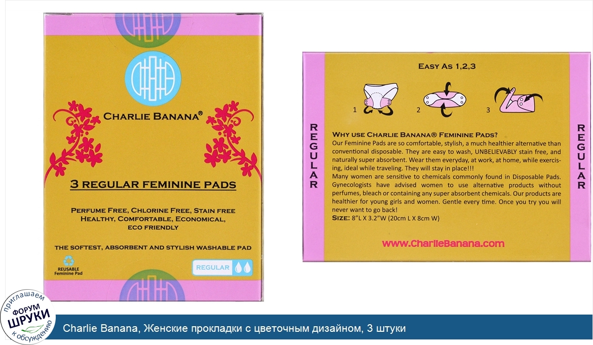 Друзья, если у вас есть отзыв/дополнение/комментарий/вопрос относительно Charlie Banana, Женские прокладки с цветочным дизайном, 3 штуки - напишите его ответом в эту тему (это будет полезно всему сообществу в целом и вам в отдельности).