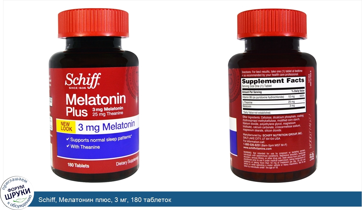 ru Schiff, Мелатонин плюс, 3 мг, 180 таблеток
