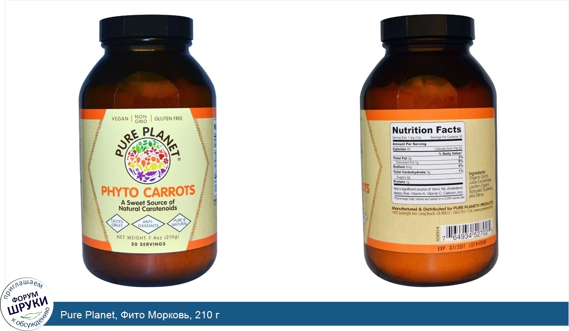 Друзья, если у вас есть отзыв/дополнение/комментарий/вопрос относительно Pure Planet, Фито Морковь, 210 г - напишите его ответом в эту тему (это будет полезно всему сообществу в целом и вам в отдельности).