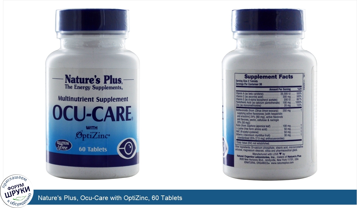 [DESCRIPT]You Deserve the Best. Quality Guaranteed. The Energy Supplements. Multinutrient Supplement. Hypo-Allergenic. Gluten Free. Nutritional support for healthy eyes and vision. Nature's Plus Ocu-Care is an advanced nutritional supplement specifically formulated for the eyes. Each tablet supplies an extensive profile of nutrients, including Opti-Zinc, a highly active, fully tested form of zinc monomethionine, and standardized Bilberry concentrate.[/DESCRIPT]... (описание дополняется)