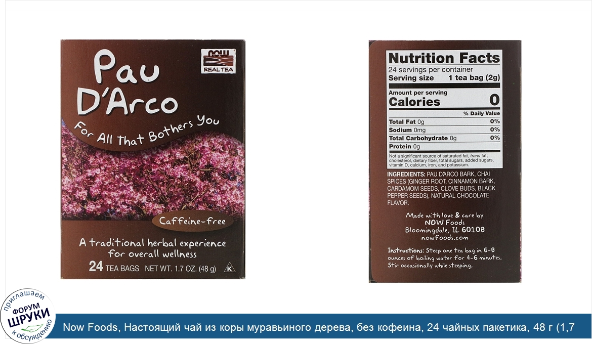 Друзья, если у вас есть отзыв/дополнение/комментарий/вопрос относительно Now Foods, Настоящий чай из коры муравьиного дерева, без кофеина, 24 чайных пакетика, 48 г (1,7 унции) - напишите его ответом в эту тему (это будет полезно всему сообществу в целом и вам в отдельности).