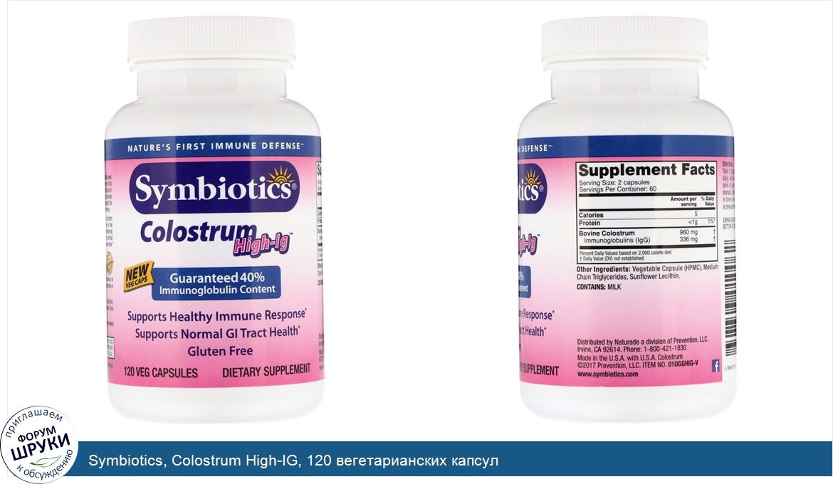 [DESCRIPT]Nature's First Immune Defense. Guaranteed 40% Immunoglobulin Content. Supports Healthy Immune Response. Supports Normal GI Tract Health. Gluten Free. Dietary Supplement. Immune Factors. Assured Quality Purity. High Yield Immunoglobulins from Symbiotics. Symbiotics Colostrum High-Ig guarantee a minimum 40% level of Immunoglobulins for people who want extra support from this essential Colostrum component. The lmmoglobulin content found in this product significantly surpasses the levels of in normal human Colostrum! Colostrum High Ig is for those with GI tract stress and for athletes or others whose bodies are under sustained physical stress. Symbiotics Colostrum High-Ig Includes the full range of immune factors including IgA, IgD, IgE, and IgM, as well as IgG, for dual action in the bloodstream and also in the GI tract, it helps maintain healthy intestinal flora. Its growth factors may enhance stamina and support normal re-growth of tissue and lean muscle after strenuous physical exercise. Quality and Purity Assured: Our colostrum is sourced exclusively from the first milking of cows not treated with rBST^ at USDA Grade A Dairies. All colostrum is laboratory tested and verified free from pesticides, antibiotics. ^The FDA has determined that there is no significant difference between cows treated with rBST and those not treated.[/DESCRIPT]... (описание дополняется)