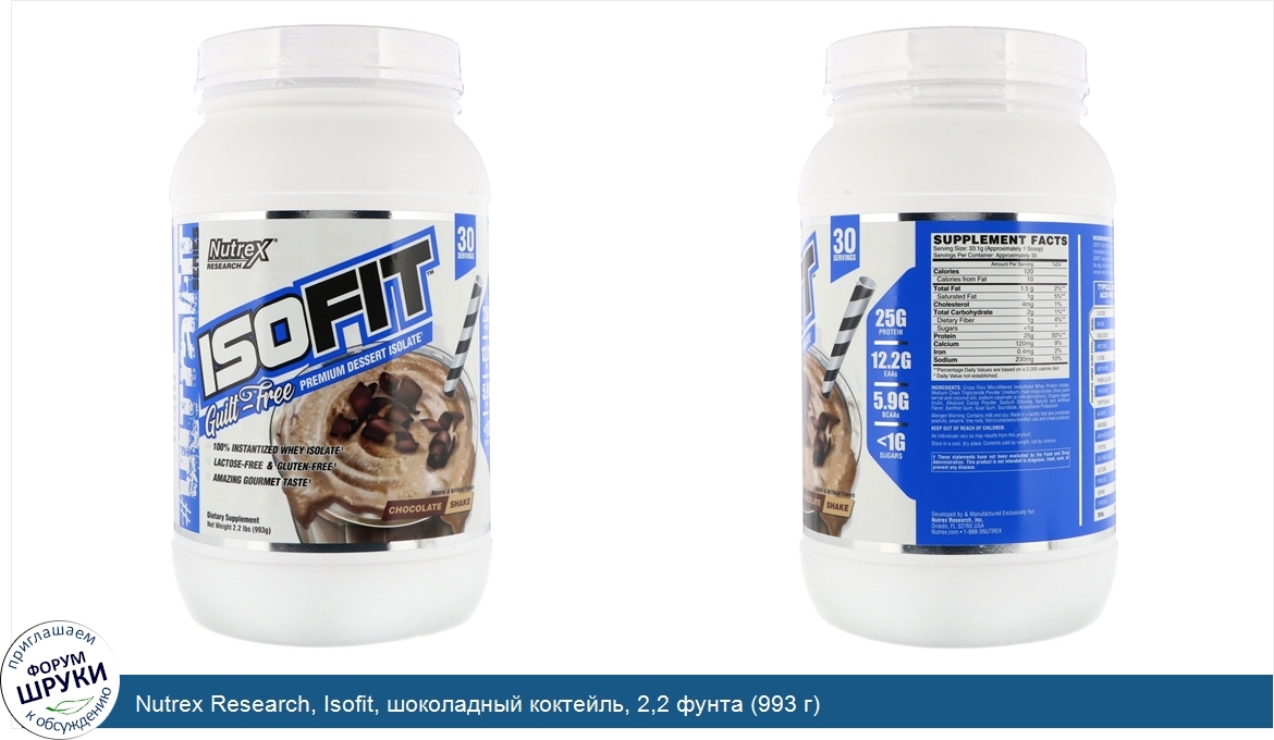 Друзья, если у вас есть отзыв/дополнение/комментарий/вопрос относительно Nutrex Research, Isofit, шоколадный коктейль, 2,2 фунта (993 г) - напишите его ответом в эту тему (это будет полезно всему сообществу в целом и вам в отдельности).