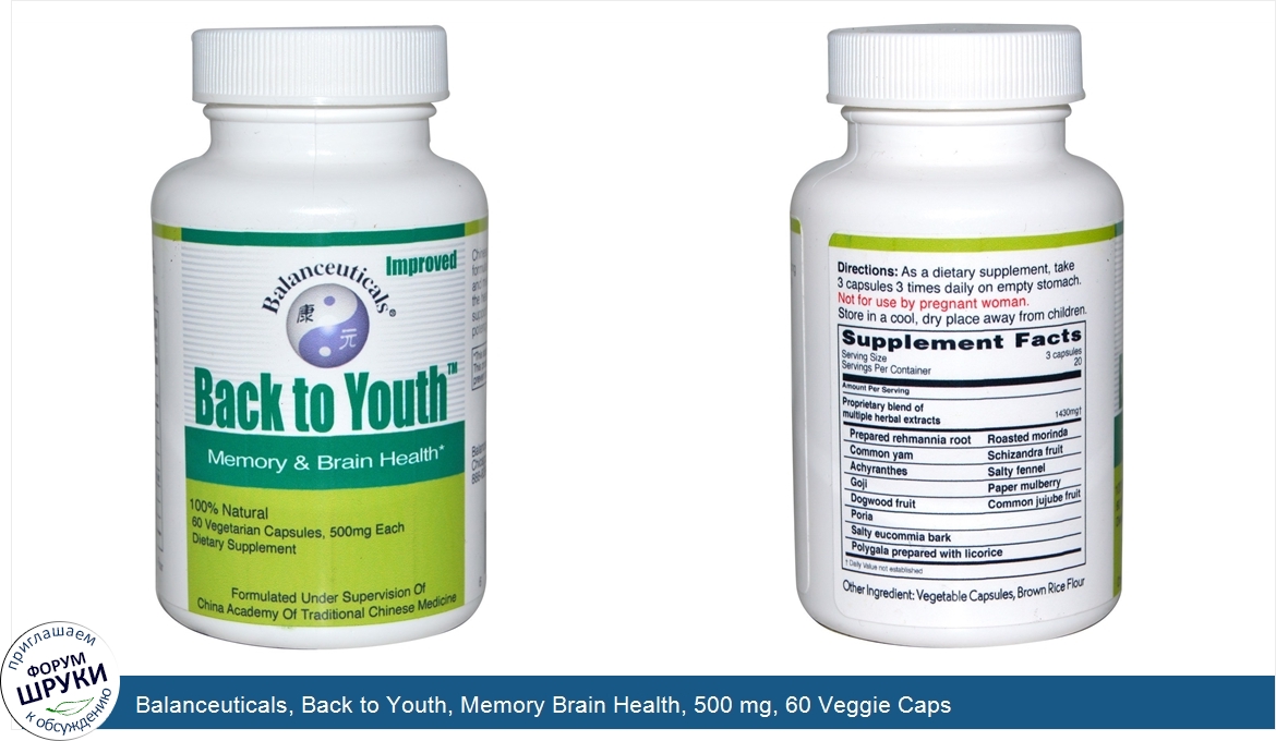 ru Balanceuticals, Back to Youth, Memory Brain Health, 500 mg, 60 Veggie Caps