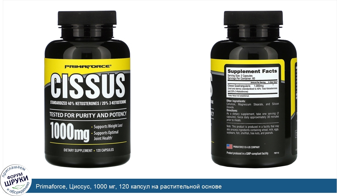 Primaforce, Циссус, 1000 мг, 120 капсул на растительной основе
