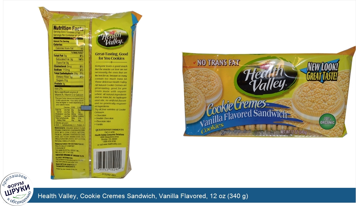 Друзья, если у вас есть отзыв/дополнение/комментарий/вопрос относительно Health Valley, Cookie Cremes Sandwich, Vanilla Flavored, 12 oz (340 g) - напишите его ответом в эту тему (это будет полезно всему сообществу в целом и вам в отдельности).