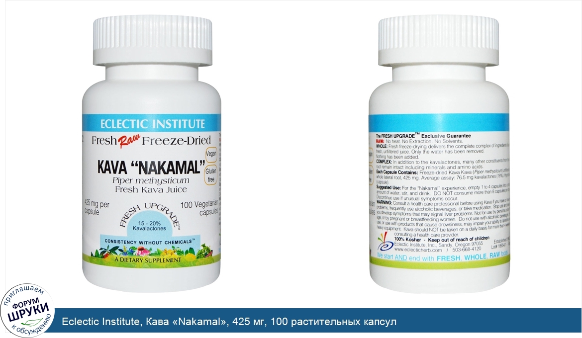 Друзья, если у вас есть отзыв/дополнение/комментарий/вопрос относительно Eclectic Institute, Кава «Nakamal», 425 мг, 100 растительных капсул - напишите его ответом в эту тему (это будет полезно всему сообществу в целом и вам в отдельности).