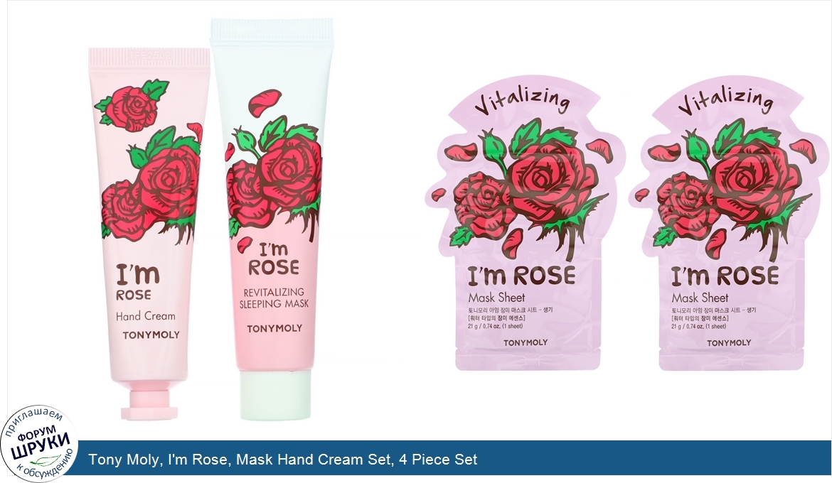 Друзья, если у вас есть отзыв/дополнение/комментарий/вопрос относительно Tony Moly, I'm Rose, Mask Hand Cream Set, 4 Piece Set - напишите его ответом в эту тему (это будет полезно всему сообществу в целом и вам в отдельности).