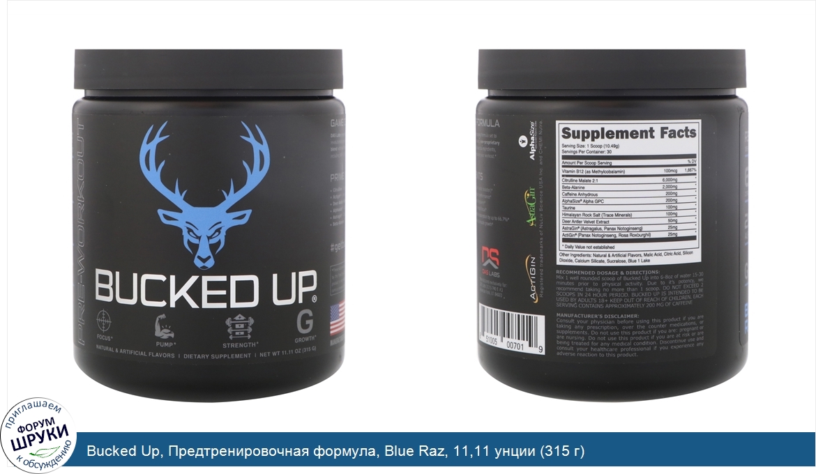 Bucked Up, Предтренировочная формула, Blue Raz, 11,11 унции (315 г)