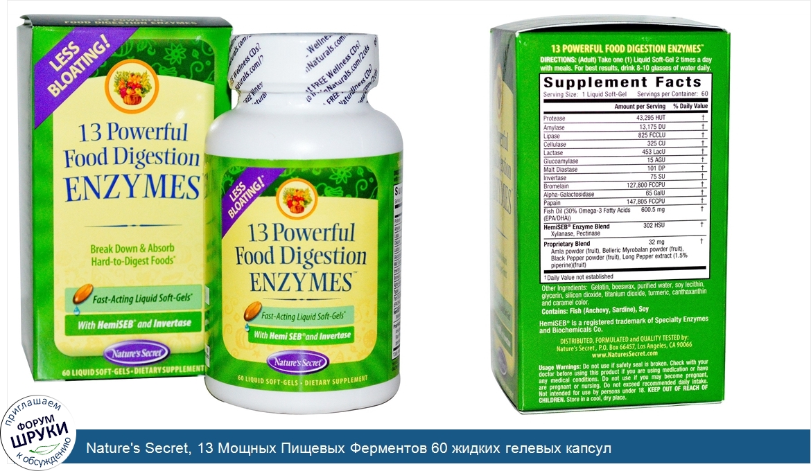 Друзья, если у вас есть отзыв/дополнение/комментарий/вопрос относительно Nature's Secret, 13 Мощных Пищевых Ферментов 60 жидких гелевых капсул - напишите его ответом в эту тему (это будет полезно всему сообществу в целом и вам в отдельности).