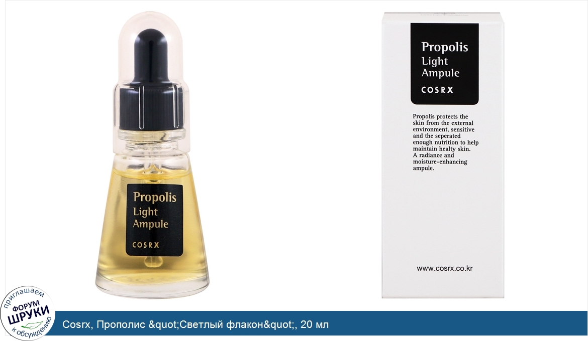 Друзья, если у вас есть отзыв/дополнение/комментарий/вопрос относительно Cosrx, Прополис "Светлый флакон", 20 мл - напишите его ответом в эту тему (это будет полезно всему сообществу в целом и вам в отдельности).