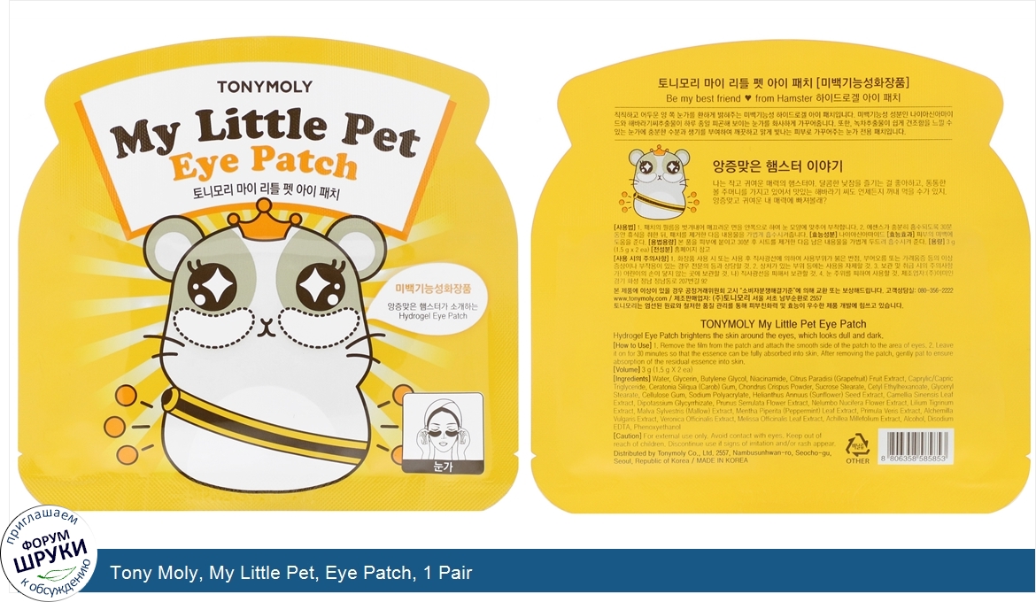 Tony Moly, My Little Pet, Eye Patch, 1 Pair