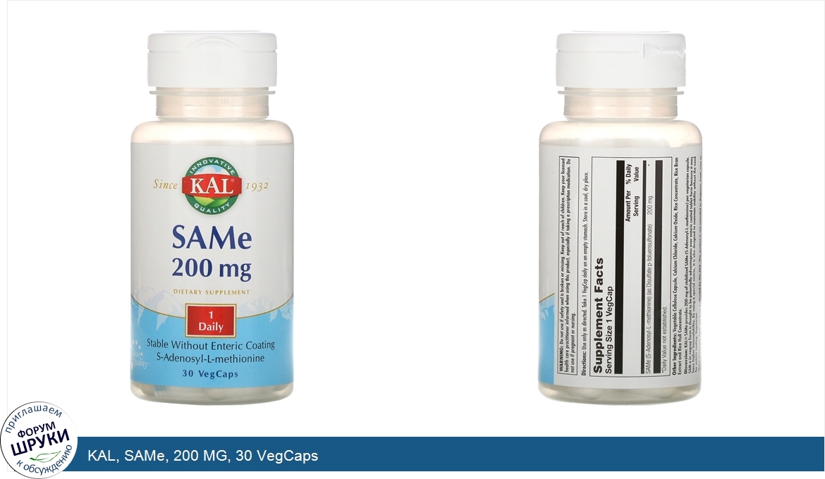 Друзья, если у вас есть отзыв/дополнение/комментарий/вопрос относительно KAL, SAMe, 200 MG, 30 VegCaps - напишите его ответом в эту тему (это будет полезно всему сообществу в целом и вам в отдельности).