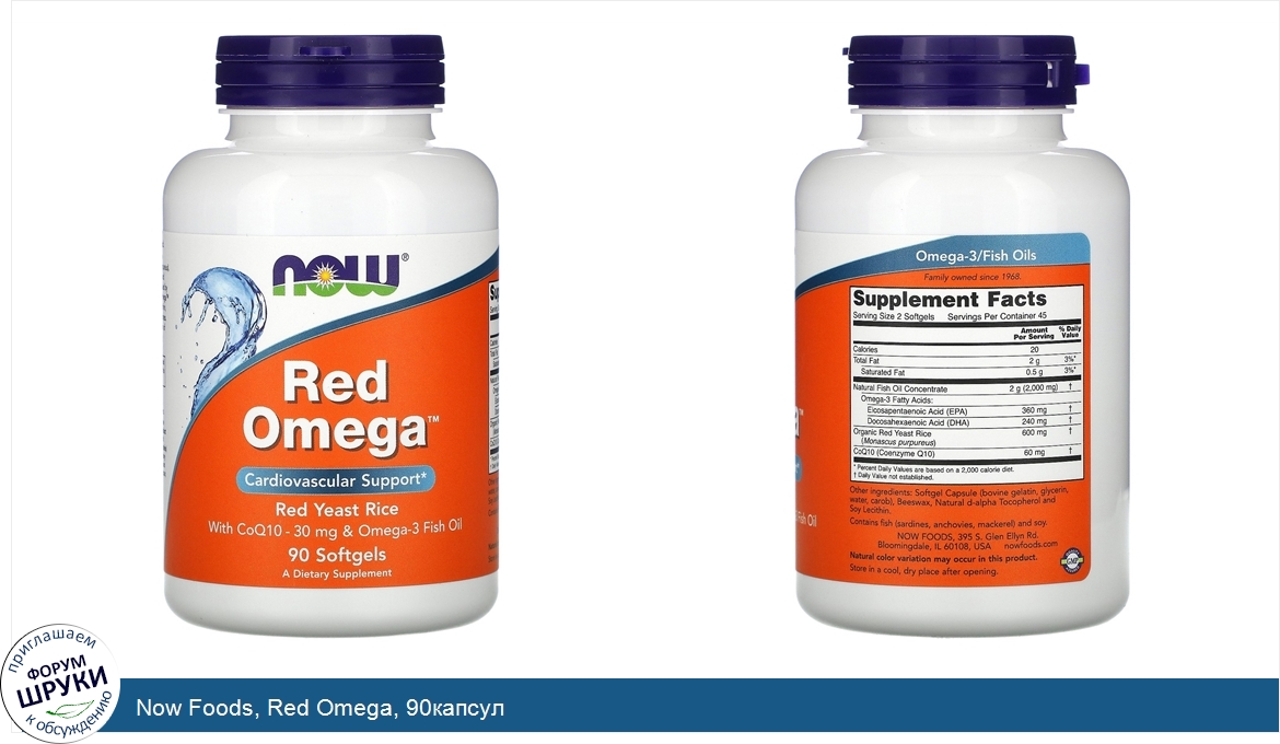 [DESCRIPT]Поддержка сердечно-сосудистой системы. Красный ферментированный рис. Содержит 30 мг коэнзима Q10 и рыбий жир с омега-3. Пищевая добавка. Семейное предприятие, основанное в 1968 году. Произведено на предприятии, имеющем регистрацию текущей надлежащей производственной практики (GMP). Красный ферментированный рис (КФР) — это натуральный продукт ферментации риса с красными дрожжами (Monascus purpureus). На протяжении веков КФР использовался в качестве ароматизатора и красителя в азиатской кухне, а также ценился традиционными азиатскими травниками. Благодаря тщательно контролируемому производству NOW® Red Omega™ в добавке отсутствует цитринин — побочный продукт процесса ферментации КФР. Эффективность добавки повышают коэнзим Q10 и рыбий жир с омега-3, которые поддерживают здоровье сердечно-сосудистой системы.[/DESCRIPT]... (описание дополняется)