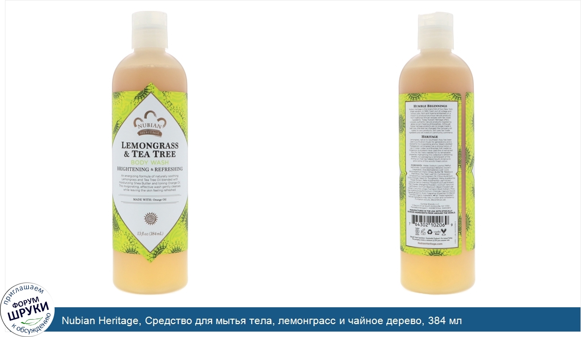 Nubian Heritage, Средство для мытья тела, лемонграсс и чайное дерево, 384 мл