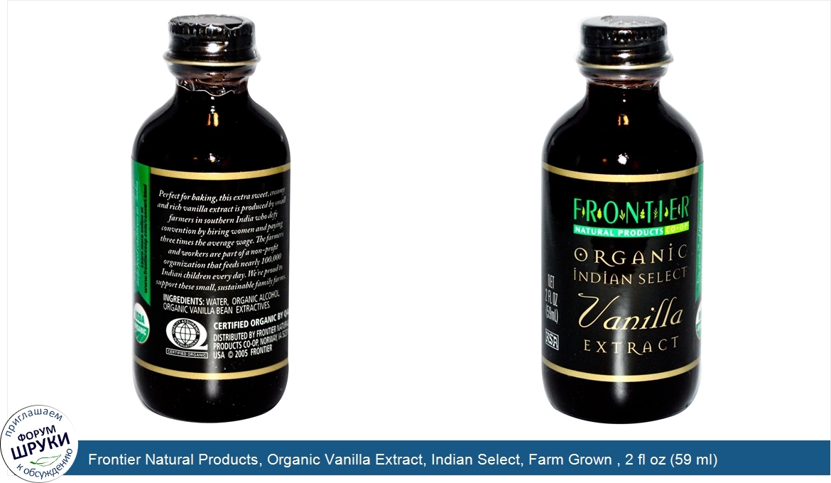 Frontier Natural Products, Organic Vanilla Extract, Indian Select, Farm Grown , 2 fl oz (59 ml)