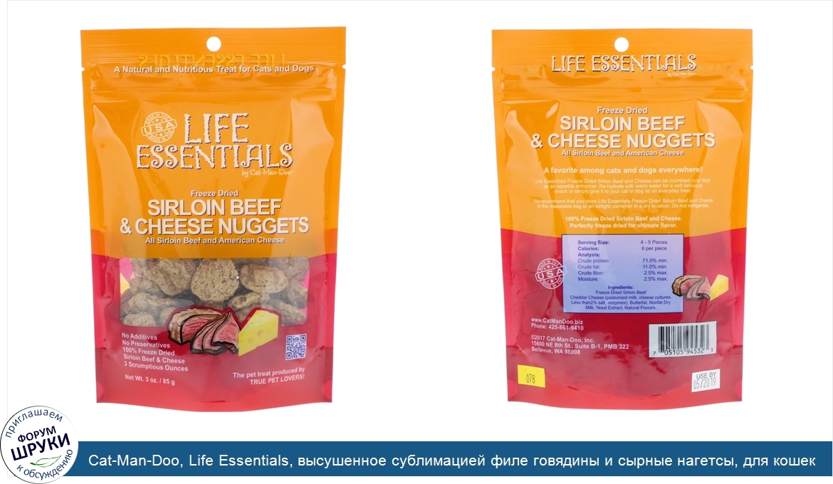 Друзья, если у вас есть отзыв/дополнение/комментарий/вопрос относительно Cat-Man-Doo, Life Essentials, высушенное сублимацией филе говядины и сырные нагетсы, для кошек и собак, 3 унции (85 г) - напишите его ответом в эту тему (это будет полезно всему сообществу в целом и вам в отдельности).