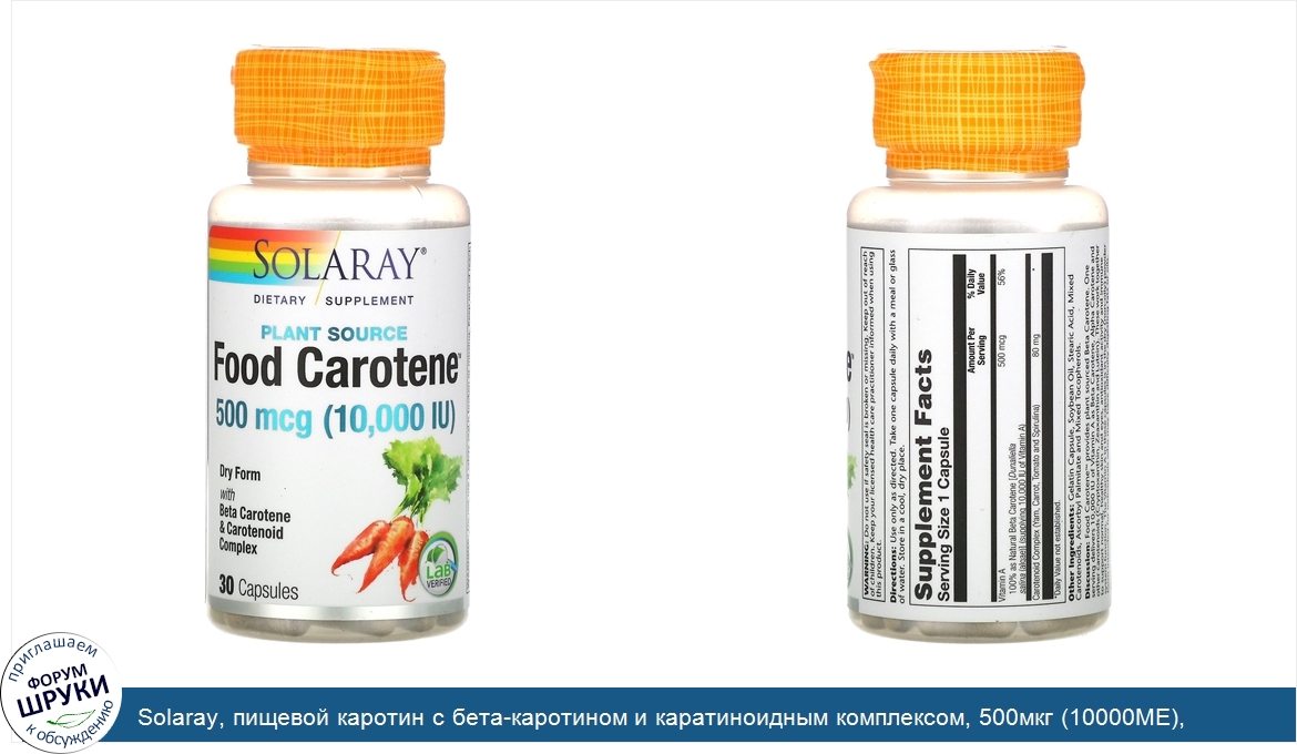 Друзья, если у вас есть отзыв/дополнение/комментарий/вопрос относительно Solaray, пищевой каротин с бета-каротином и каратиноидным комплексом, 500мкг (10000МЕ), 30капсул - напишите его ответом в эту тему (это будет полезно всему сообществу в целом и вам в отдельности).