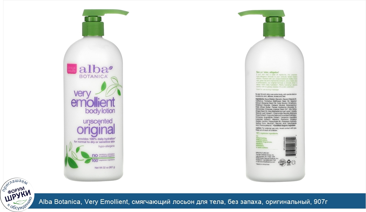 Друзья, если у вас есть отзыв/дополнение/комментарий/вопрос относительно Alba Botanica, Very Emollient, смягчающий лосьон для тела, без запаха, оригинальный, 907г (32унции) - напишите его ответом в эту тему (это будет полезно всему сообществу в целом и вам в отдельности).