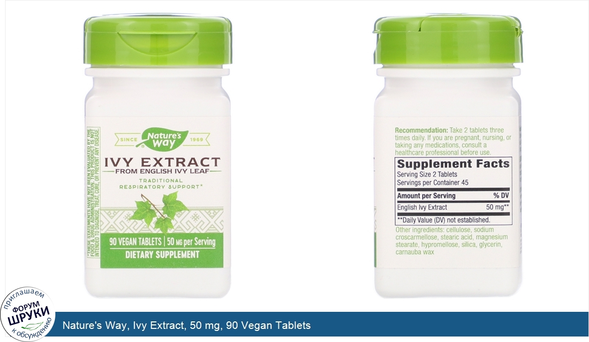 Друзья, если у вас есть отзыв/дополнение/комментарий/вопрос относительно Nature's Way, Ivy Extract, 50 mg, 90 Vegan Tablets - напишите его ответом в эту тему (это будет полезно всему сообществу в целом и вам в отдельности).