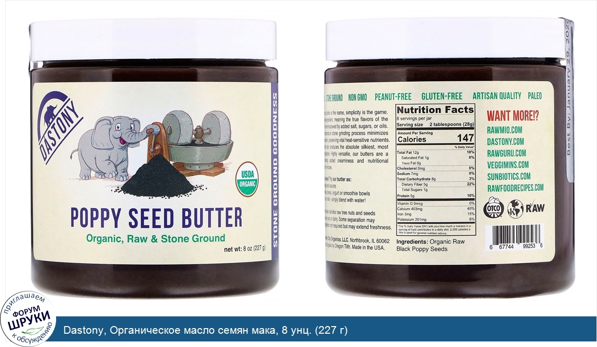 Друзья, если у вас есть отзыв/дополнение/комментарий/вопрос относительно Dastony, Органическое масло семян мака, 8 унц. (227 г) - напишите его ответом в эту тему (это будет полезно всему сообществу в целом и вам в отдельности).