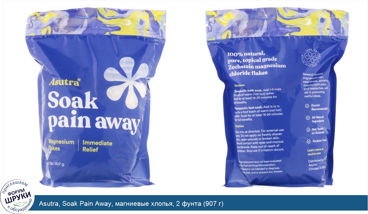 Друзья, если у вас есть отзыв/дополнение/комментарий/вопрос относительно Asutra, Soak Pain Away, магниевые хлопья, 2 фунта (907 г) - напишите его ответом в эту тему (это будет полезно всему сообществу в целом и вам в отдельности).