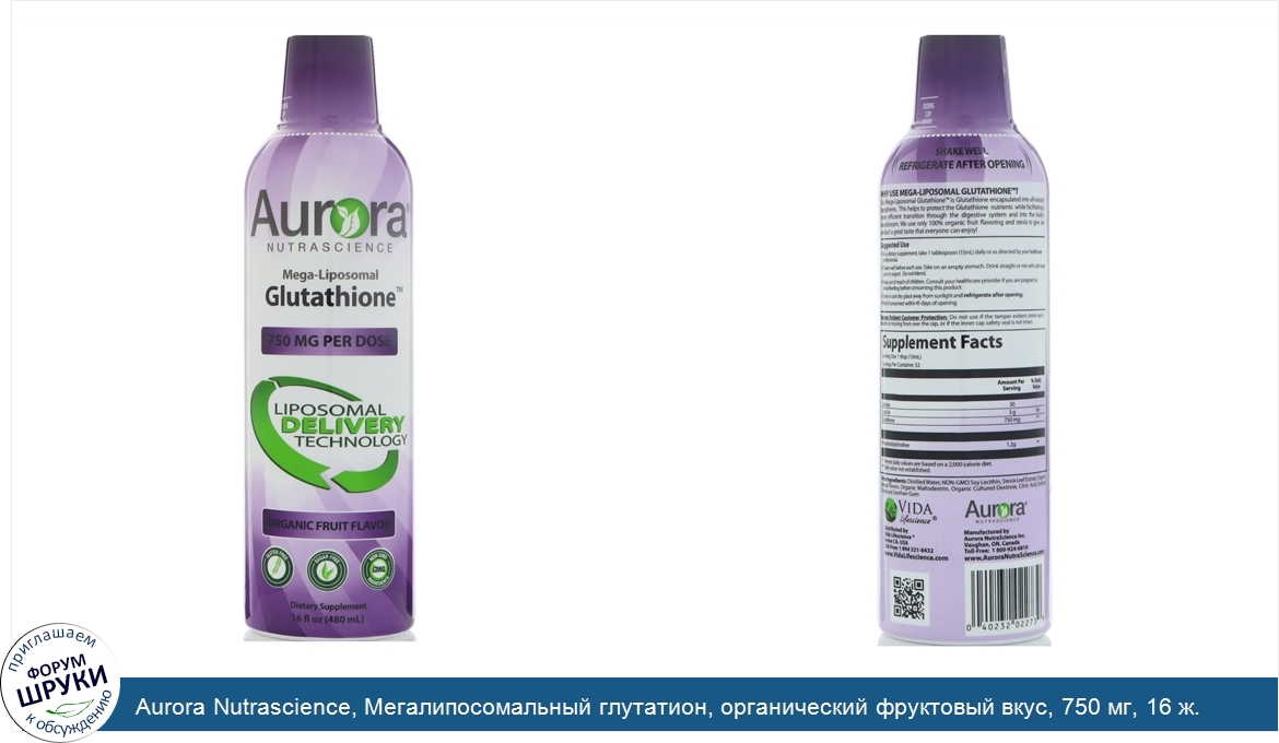 Друзья, если у вас есть отзыв/дополнение/комментарий/вопрос относительно Aurora Nutrascience, Мегалипосомальный глутатион, органический фруктовый вкус, 750 мг, 16 ж. унц. (480 мл) - напишите его ответом в эту тему (это будет полезно всему сообществу в целом и вам в отдельности).