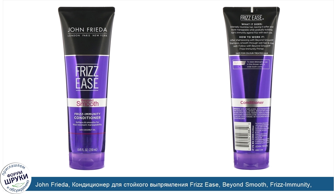 Друзья, если у вас есть отзыв/дополнение/комментарий/вопрос относительно John Frieda, Кондиционер для стойкого выпрямления Frizz Ease, Beyond Smooth, Frizz-Immunity, 250мл - напишите его ответом в эту тему (это будет полезно всему сообществу в целом и вам в отдельности).