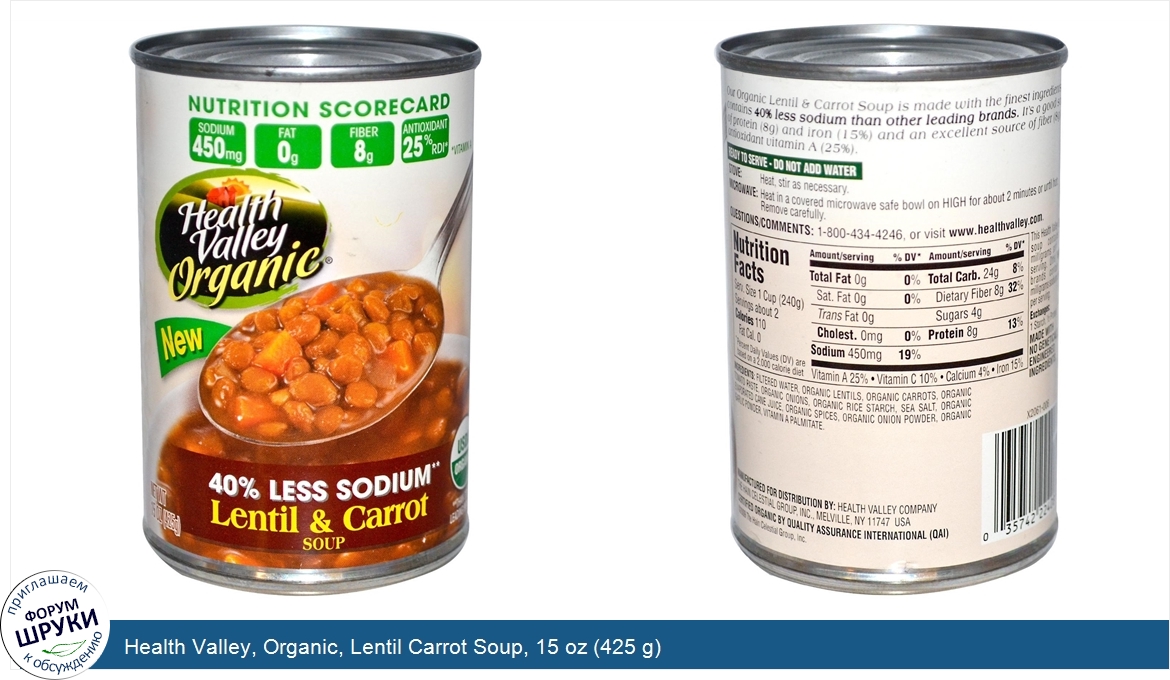 Друзья, если у вас есть отзыв/дополнение/комментарий/вопрос относительно Health Valley, Organic, Lentil Carrot Soup, 15 oz (425 g) - напишите его ответом в эту тему (это будет полезно всему сообществу в целом и вам в отдельности).