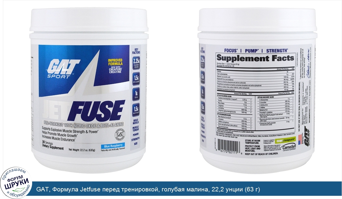 Друзья, если у вас есть отзыв/дополнение/комментарий/вопрос относительно GAT, Формула Jetfuse перед тренировкой, голубая малина, 22,2 унции (63 г) - напишите его ответом в эту тему (это будет полезно всему сообществу в целом и вам в отдельности).