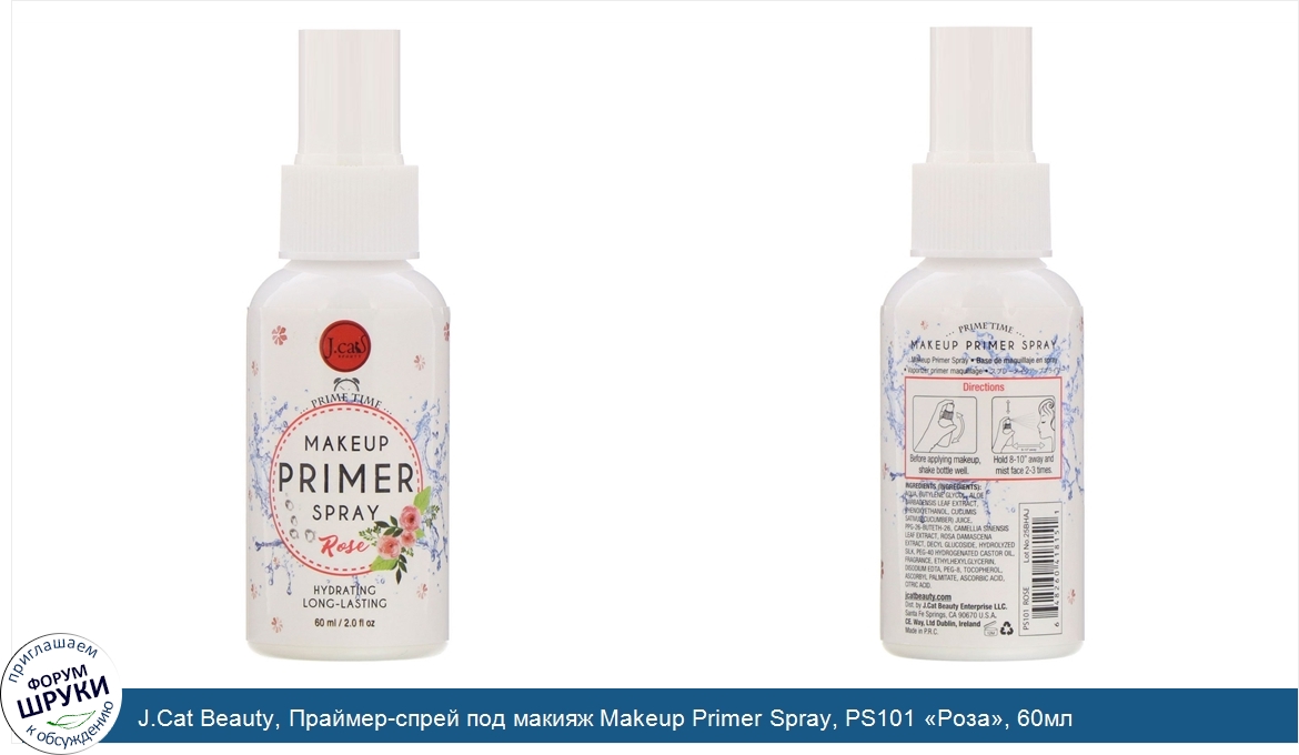 J.Cat Beauty, Праймер-спрей под макияж Makeup Primer Spray, PS101 «Роза», 60мл