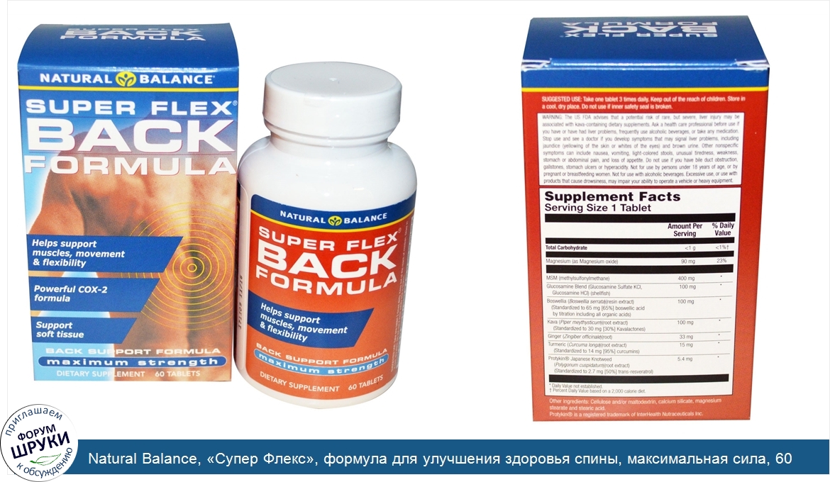 Друзья, если у вас есть отзыв/дополнение/комментарий/вопрос относительно Natural Balance, «Супер Флекс», формула для улучшения здоровья спины, максимальная сила, 60 таблеток - напишите его ответом в эту тему (это будет полезно всему сообществу в целом и вам в отдельности).