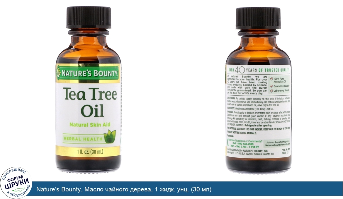 Друзья, если у вас есть отзыв/дополнение/комментарий/вопрос относительно Nature's Bounty, Масло чайного дерева, 1 жидк. унц. (30 мл) - напишите его ответом в эту тему (это будет полезно всему сообществу в целом и вам в отдельности).