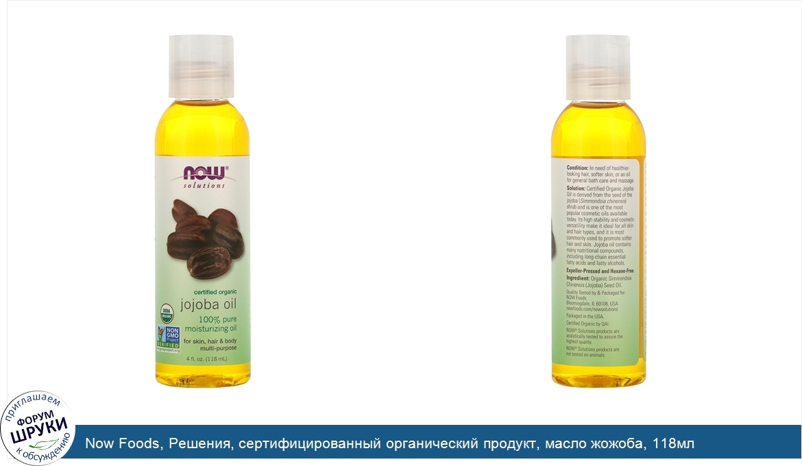 Друзья, если у вас есть отзыв/дополнение/комментарий/вопрос относительно Now Foods, Решения, сертифицированный органический продукт, масло жожоба, 118мл - напишите его ответом в эту тему (это будет полезно всему сообществу в целом и вам в отдельности).