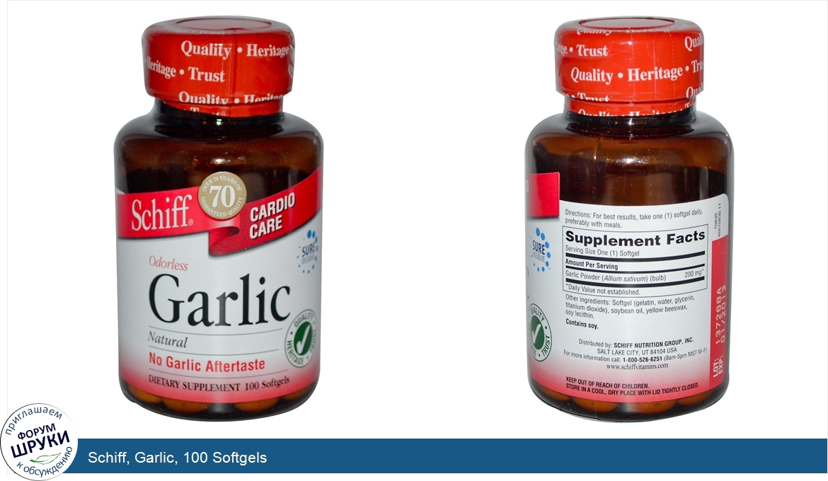 Друзья, если у вас есть отзыв/дополнение/комментарий/вопрос относительно Schiff, Garlic, 100 Softgels - напишите его ответом в эту тему (это будет полезно всему сообществу в целом и вам в отдельности).