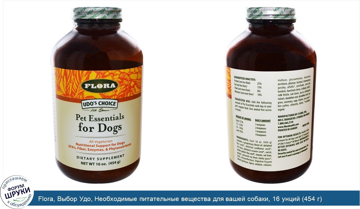 Друзья, если у вас есть отзыв/дополнение/комментарий/вопрос относительно Flora, Выбор Удо, Необходимые питательные вещества для вашей собаки, 16 унций (454 г) - напишите его ответом в эту тему (это будет полезно всему сообществу в целом и вам в отдельности).