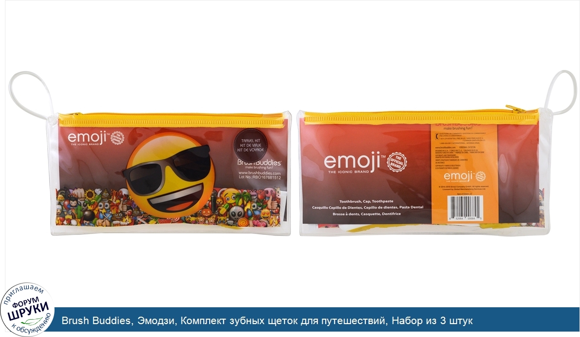Друзья, если у вас есть отзыв/дополнение/комментарий/вопрос относительно Brush Buddies, Эмодзи, Комплект зубных щеток для путешествий, Набор из 3 штук - напишите его ответом в эту тему (это будет полезно всему сообществу в целом и вам в отдельности).