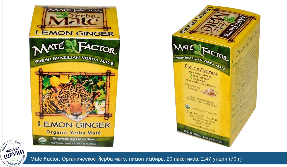Друзья, если у вас есть отзыв/дополнение/комментарий/вопрос относительно Mate Factor, Органическое Йерба матэ, лимон имбирь, 20 пакетиков, 2,47 унции (70 г) - напишите его ответом в эту тему (это будет полезно всему сообществу в целом и вам в отдельности).