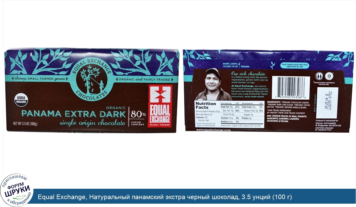 Друзья, если у вас есть отзыв/дополнение/комментарий/вопрос относительно Equal Exchange, Натуральный панамский экстра черный шоколад, 3.5 унций (100 г) - напишите его ответом в эту тему (это будет полезно всему сообществу в целом и вам в отдельности).