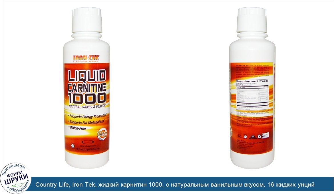 Друзья, если у вас есть отзыв/дополнение/комментарий/вопрос относительно Country Life, Iron Tek, жидкий карнитин 1000, с натуральным ванильным вкусом, 16 жидких унций (473 мл) - напишите его ответом в эту тему (это будет полезно всему сообществу в целом и вам в отдельности).