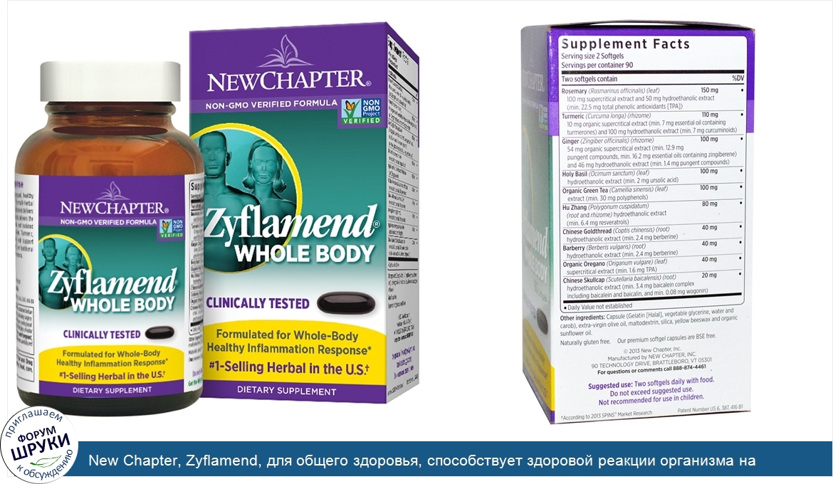 Друзья, если у вас есть отзыв/дополнение/комментарий/вопрос относительно New Chapter, Zyflamend, для общего здоровья, способствует здоровой реакции организма на воспаление180 капсул - напишите его ответом в эту тему (это будет полезно всему сообществу в целом и вам в отдельности).