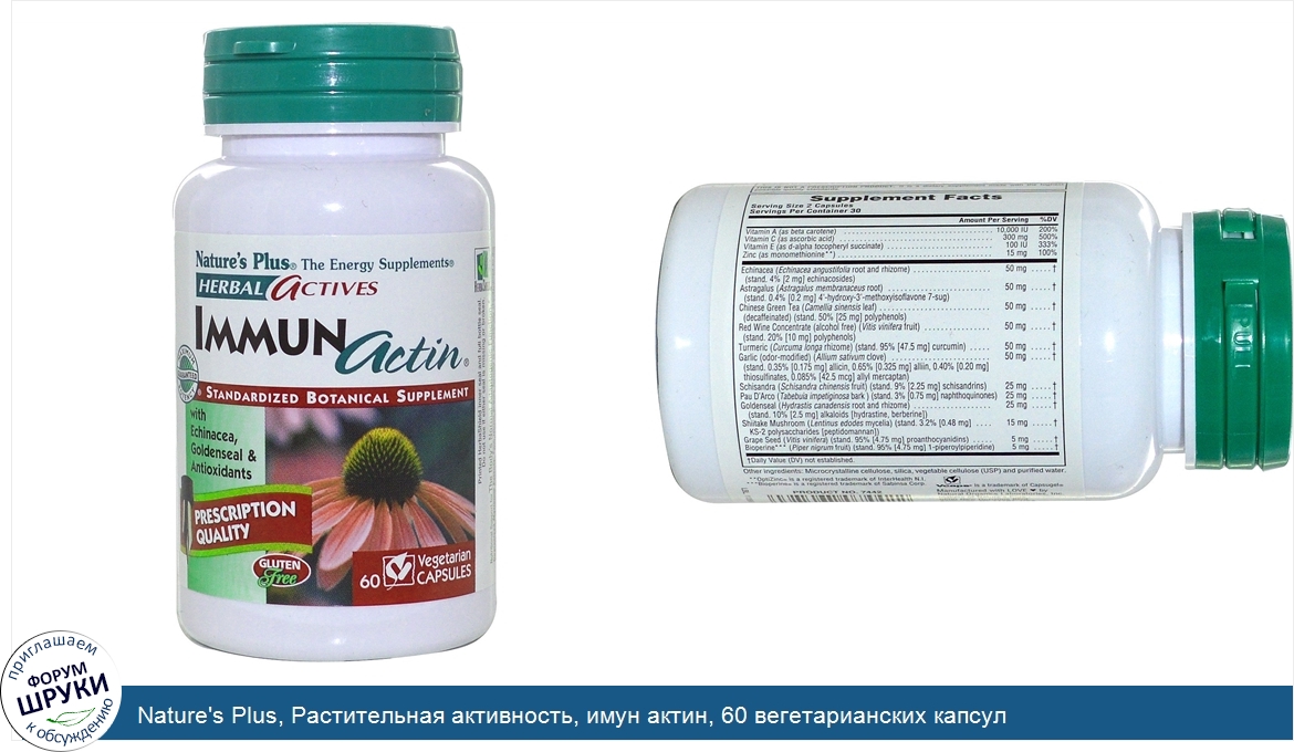 ru Nature's Plus, Растительная активность, имун актин, 60 вегетарианских капсул