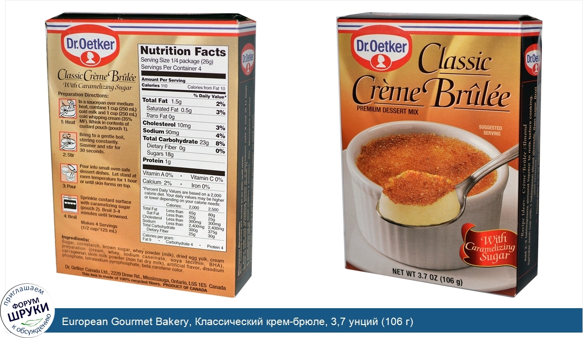 Друзья, если у вас есть отзыв/дополнение/комментарий/вопрос относительно European Gourmet Bakery, Классический крем-брюле, 3,7 унций (106 г) - напишите его ответом в эту тему (это будет полезно всему сообществу в целом и вам в отдельности).