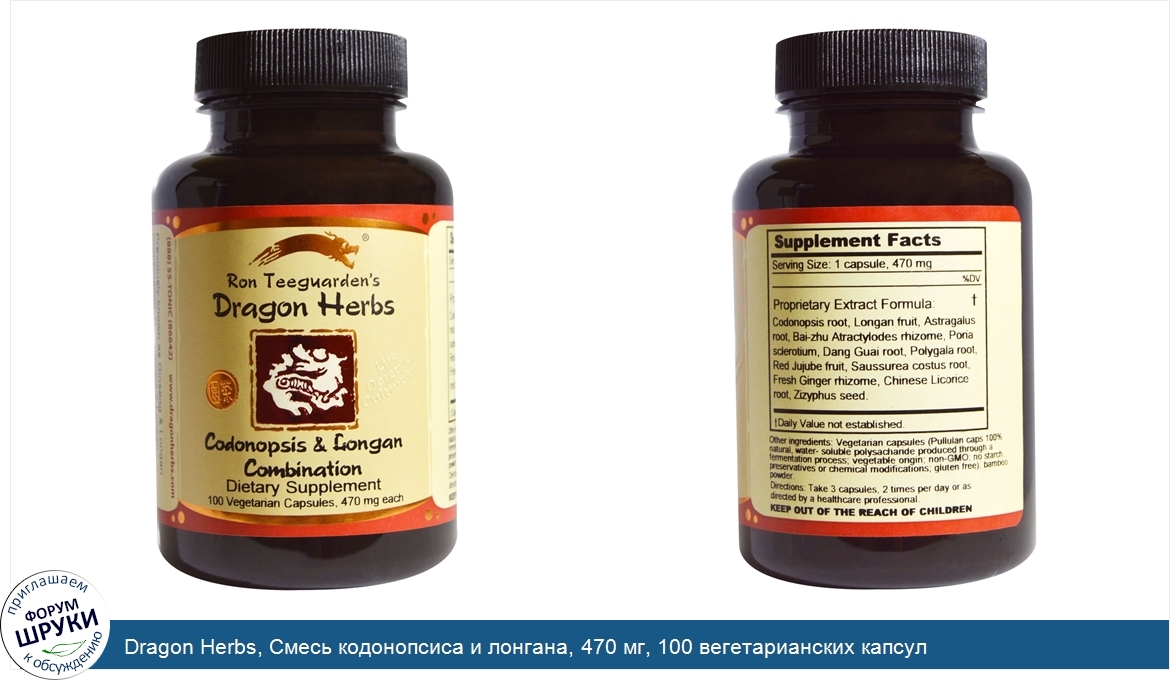 Dragon Herbs, Смесь кодонопсиса и лонгана, 470 мг, 100 вегетарианских капсул
